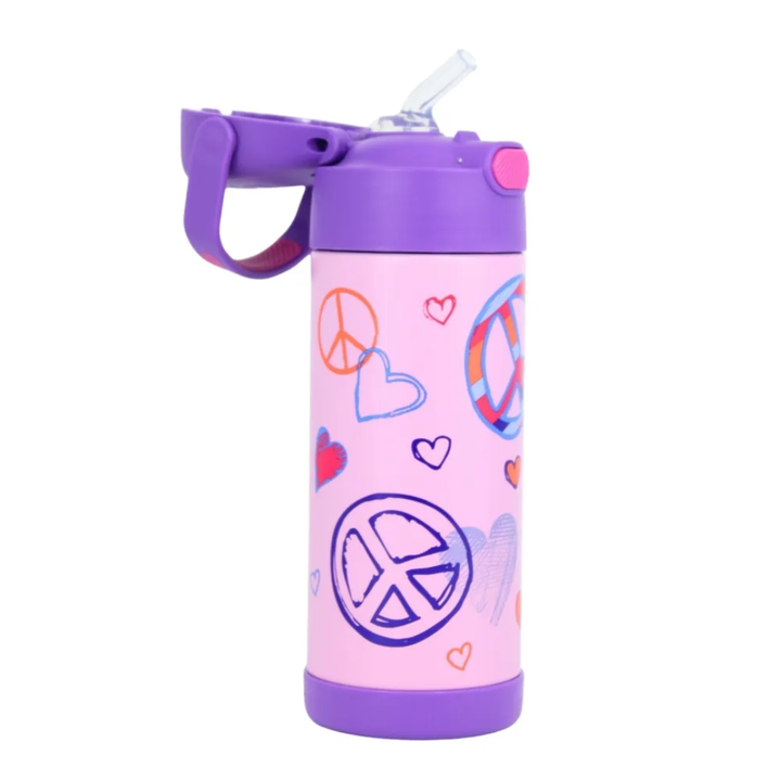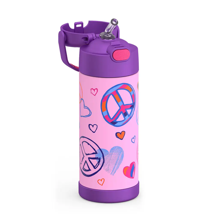 La botella de 12 oz incluye un asa de transporte integrada con agarre suave al tacto, lo que facilita que los niños la lleven consigo durante todo el día. El mango también se puede plegar cuando no se usa.