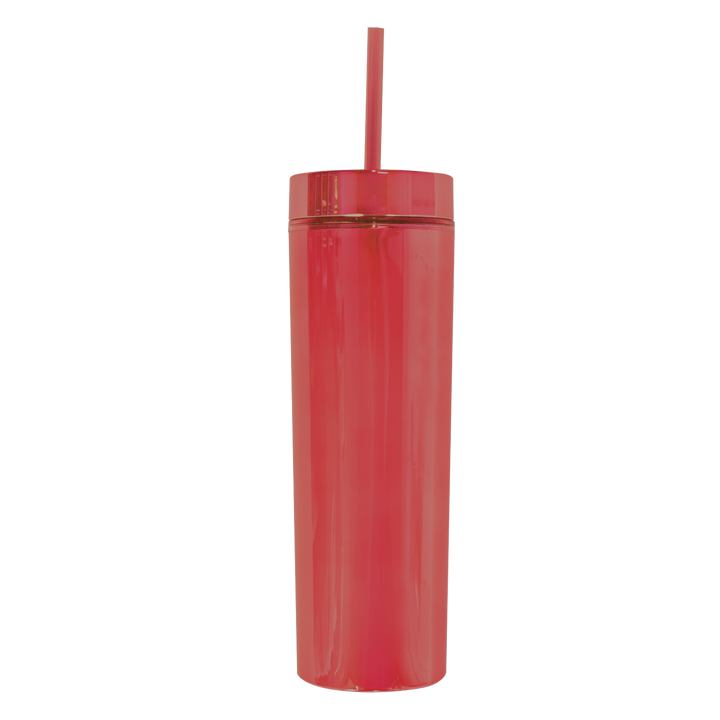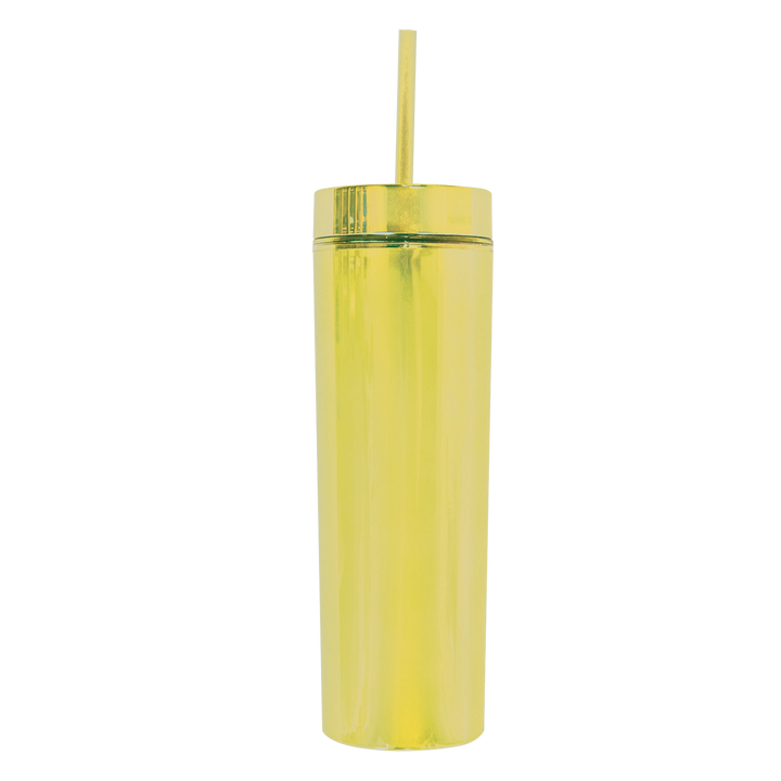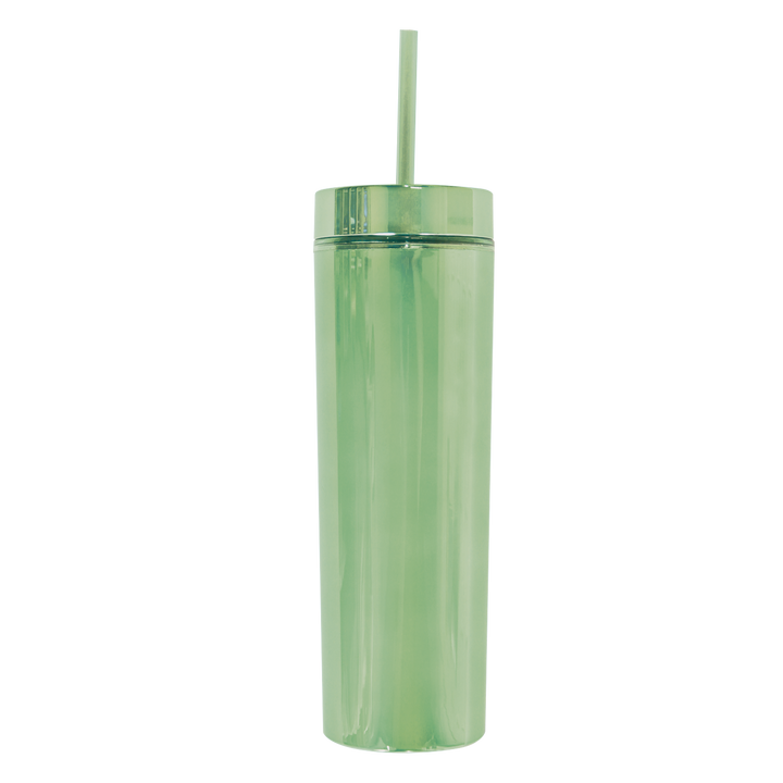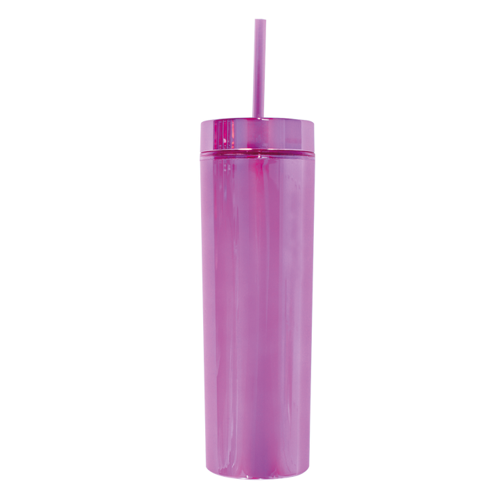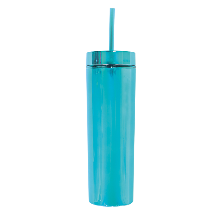 El vaso Skinny Electric de 400 ml (14 oz) es una opción moderna y llamativa para quienes buscan practicidad con un diseño estilizado. Su acabado cromado y forma delgada lo hacen destacar, mientras su construcción de doble pared ayuda a mantener la temperatura de tus bebidas por más tiempo. Ideal para el uso diario, es ligero, reutilizable y libre de BPA, perfecto para llevar a todas partes.