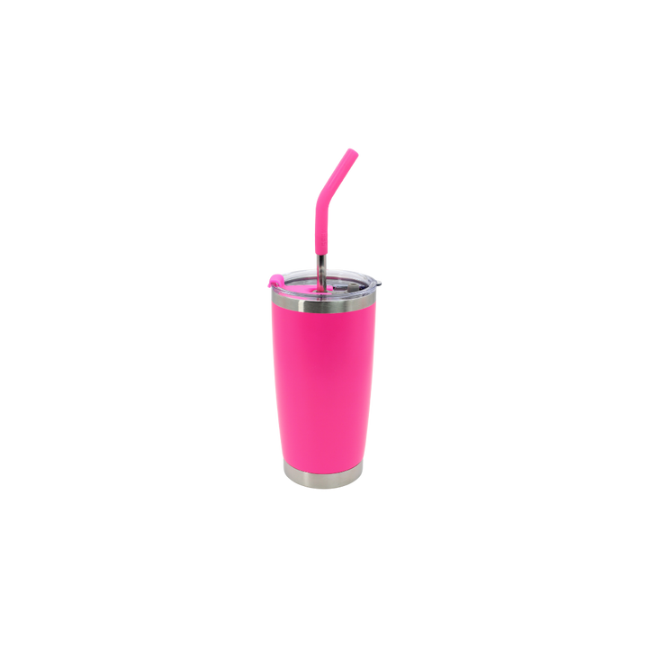 Nuevo Vaso Aislante 20 oz Mate Rosa Neón con Popote